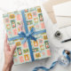 Adicione um toque de elegância nostálgica aos seus presentes de férias com este papel de embrulho de Natal com selos de correio de férias antigos num fundo verde de menta pastel. Cada selo captura o charme das cenas clássicas de Natal, fazer que seus presentes pareçam ter viajado através do tempo para espalhar alegria festiva.