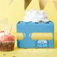 Um carro azul sorridente lavando-se com pincel de lavagem de roupa.
