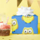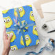 Papel de embrulho azul personalizado. Desenho de corujas bebês. Personagem de desenho animado bonito. Ideia de presente para crianças.