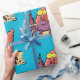 Esta animação de caranguejo eremita feliz é um roxo brilhante e colorido e laranja com fundo azul. Leva-me ao mar!