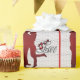 Silhueta de casal de cowboy e cowboy parada em uma posição abraçada com corações de tom de joia e a palavra AMOR. Há um pequeno fundo preto impresso no papel de embrulho de presente.