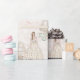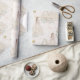 Lindo papel para dar presentes de casamento. Um padrão de noiva branco e creme com detalhes em dourado