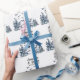 Este romântico papel de embrulho de presente de casamento apresenta uma cena do Pacífico Noroeste com estilo aquarela. Uma imagem das montanhas rochosas cobertas de neve é fotografada a distância. Um veado macho é fotografado perto da frente, entre uma floresta de pinheiros. Um bando de pássaros voa sobre as árvores. É perfeito para um casamento ao ar livre, casamento no inverno, primavera ou qualquer estação.