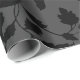 Uma cinza e um papel de embalagem floral preto, com uma silhueta de florais contra um fundo de cor sólida de cinza média.