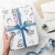 Papel de enfeite de castigo desenhado com uma mão engraçada e engraçada - Enrole um presente para a noiva estar nesse papel de embrulho de casamento bonito, caprichoso e desenhado à mão. Apresentando ilustrações desenhadas à mão de ícones românticos de casamento, como noiva e noivo dançarinos, um par de cisnes, um bolo de casamento, um rico-candelabro e corações. Em preto e branco elegante, ele se coordena com qualquer tema de chá de panela. Perfeito para festas de solteira também!