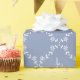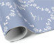 Chic e moderno. Este memorável papel de embrulho francês apresenta um padrão repetido que inclui um adorável conjunto de fontes contemporâneas dentro um quadro floral branco, contra um fundo azul empoeirado.