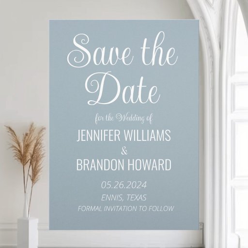 Nomes simples, elegantes, azuis empoeirados, noivas e noivos e papel de embrulho de data. Perfeito para presente de casamento.