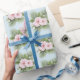 Papel De Presente Casamento Floral Tropical Azul-Rosa Hibiscus
