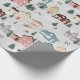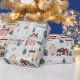 Numa pequena cidade, pessoas caminham entre casas cobertas de neve e pinheiros. Um padrão perfeito para presentes de inverno!