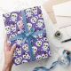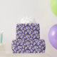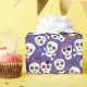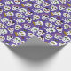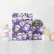 Estes crânios têm um pouco de medo e muito fofo! Um pirata, um crânio mimado por uma aranha, alguns ossos, milho doce, e olhos coloridos compõem o padrão neste papel de embrulho de Halloween roxo.