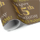 Este design de papel de embrulho apresenta uma mensagem como "HAPPY 15 BIRTHDAY", com o "15" a ter uma aparência falsa/de ouro de imitação. Ele também apresenta um nome personalizado e um fundo castanho. Talvez possa ser utilizada quando se dá presentes para o décimo quinto aniversário de alguém. [~Z0000133]