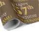 Este design de papel de embrulho apresenta uma mensagem como "FELIZ 57º ANIVERSÁRIO", com o "57º" a ter uma aparência falsa/imitação de ouro. Ele também apresenta um nome personalizável e um fundo castanho. Talvez possa ser utilizado quando se dá presentes para o cinquenta e sétimo aniversário de alguém. [~Z0000133]