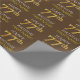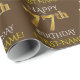 Este design de papel de embrulho apresenta uma mensagem como "FELIZ 77º ANIVERSÁRIO", com o "77º" a ter uma aparência falsa/imitação de ouro. Ele também apresenta um nome personalizado e um fundo castanho. Talvez possa ser utilizado quando se dá presentes para o setenta e sete anos de alguém. [~Z0000133]