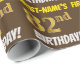 Este design de papel de empacotamento apresenta uma mensagem como "PRIMEIRO NOME É 82º ANIVERSÁRIO!", com o "82º" a ter uma aparência de cor falsa/imitação em forma de ouro, e com o nome e "ANIVERSÁRIO" numa fonte divertida e ousada. O nome pode ser personalizado e o fundo é castanho. Um papel de embrulho como este poderia talvez ser usado no embrulho de presentes de aniversário que são dados a alguém em comemoração do seu oitenta e segundo aniversário. [~Z0000211]