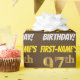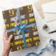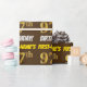 Este design de papel de embrulho apresenta uma mensagem como "FIRST-NAME'S 97th BIRTHDAY!", com o "97º" a ter uma aparência falsa/imitada de cor dourada, e com o nome e "BIRTHDAY" numa fonte divertida e ousada. O nome pode ser personalizado e o fundo é castanho. Um papel de embrulho como este poderia talvez ser usado no embrulho de presentes de aniversário que são dados a alguém em comemoração do seu nonagésimo sétimo aniversário. [~Z0000211]