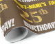 Este design de papel de embrulho apresenta uma mensagem como "PRIMEIRO NOME DO 25 DE ANIVERSÁRIO!", com o "25" a ter uma aparência falsa/imitada de cor dourada, e com o nome e "ANIVERSÁRIO" numa letra divertida e ousada. O nome é personalizável e o fundo é castanho colorido. Um papel de embrulho como este poderia talvez ser usado para embrulhar presentes de aniversário que são dados a alguém em comemoração de seu vigésimo quinto aniversário. [~Z0000211]