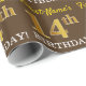 Este design de papel de embrulho apresenta uma mensagem como "First-Name’s 14 BIRTHDAY!", com o "14" a ter uma aparência falsa/de cor dourada. O nome pode ser personalizado e o fundo é castanho. Talvez possa ser utilizada quando se dá presentes para o décimo quarto aniversário de alguém. [~Z0000180]