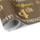 Este design de papel de embrulho apresenta uma mensagem como "Primeiro Nome é 4º ANIVERSÁRIO!", com o "4º" a ter uma aparência de cor falsa/imitada em ouro. O nome pode ser personalizado, e o fundo é castanho. Talvez possa ser utilizado quando se trata de embrulhar presentes para o quarto aniversário de alguém. [~Z0000180]