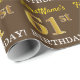 Este design de papel de embrulho apresenta uma mensagem como "FirstName’s 61rua BIRTHDAY!", com a "61ruas" a ter uma aparência falsa e imitada de cor dourada. O nome pode ser personalizado e o fundo é castanho. Talvez possa ser utilizada quando se dá presentes para o sexagésimo primeiro aniversário de alguém. [~Z0000180]