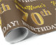 Este design de papel de embrulho apresenta uma mensagem como "FirstName’s 70 BIRTHDAY!", com o "70" a ter uma aparência de cor falsa/imitada em ouro. O nome pode ser personalizado e o fundo é castanho. Talvez possa ser utilizada quando se trata de dar presentes para o 70º aniversário de alguém. [~Z0000180]