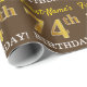 Este design de papel de embrulho apresenta uma mensagem como "First-Name’s 74th BIRTHDAY!", com o "74º" a ter uma aparência falsa/de cor dourada. O nome pode ser personalizado, e o fundo é castanho. Talvez possa ser utilizado quando se dá presentes para o setenta e quatro anos de alguém. [~Z0000180]