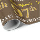 Este design de papel de embrulho apresenta uma mensagem como "FirstName’s 97th BIRTHDAY!", com o "97º" a ter uma aparência de cor falsa/imitada em ouro. O nome pode ser personalizado e o fundo é castanho. Talvez possa ser utilizado quando se dá presentes para o nonagésimo sétimo aniversário de alguém. [~Z0000180]