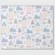 Este adorável papel de embrulho para meninas apresenta um simples fundo branco com castelos cor-de-rosa, montanhas azuis, lábios, flores e corações cor-de-rosa com fitas azuis. Tão fofo. É perfeito para chás de fraldas, aniversários de criança ou como presente para um evento especial.