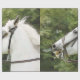 Um design de aquarela de um belo cavalo branco impacientemente esperando para galopar.