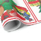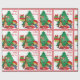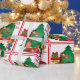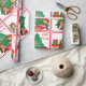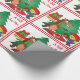 Cavalo de cartum segurando presentes em frente a uma árvore de Natal e uma cowgirl em um cavalo de palito impresso em papel de embalagem de presentes de férias. O texto incluído diz "Um presente para você". Veja este design em outros itens de feriado na Loja de Dias de Rodeio.