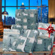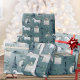 Um papel de embrulho de presente de Natal com um cavalo selvagem branco de inverno com marinho azul-espruce, amoras marinhos, ornamentos brancos de bola e caixas de presentes brancos embrulhados fazem este excepcional plástico de presente com moldagem de Natal.
