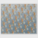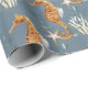 Papel de embrulho náutico, com uma coloração aquosa, pintado de cavalos-marinhos com coral e algas contra fundo azul empoeirado.
