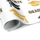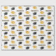 Papel de embrulhamento de celebração do boné de formatura Topper, Celebre a graduação com este design na moda com um boné preto, folha de ouro. O padrão repetitivo diz "Formando" em um script de pincel moderno na na moda em folha de ouro falsa. Se você está procurando por ideias de decoração de mesas de festa de formatura, então presentes embrulhados em cores de escola preta e dourada fazem ideias de mesa de graduação de excelentes como peça central. Coordenar com decorações de mesas com o tema do boné de formatura, incluindo guardanapos, placas e favoritos para festas de cores da escola