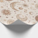 Elegant celestial botanical pattern wrapping paper featuring moons, stars, planets, mystical eyes, and delicate leafy branches in a minimal black and cream style. Ideal for astrology lovers, spiritual seekers, nature enthusiasts, and anyone who loves boho celestial aesthetics.