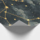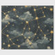 Mystical constellation pattern wrapping paper featuring golden stars, celestial lines, and dreamy clouds across a dark night sky background. Ideal for astrology lovers, stargazers, astronomy fans, spiritual seekers, and anyone who loves cosmic and celestial style.