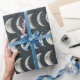Elegant moon phase and celestial pattern wrapping paper featuring crescent moons, stars, and radiant lunar details on a dark background. Ideal for astrology lovers, moon enthusiasts, spiritual seekers, stargazers, and fans of mystical celestial style.