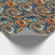 Papel De Presente Celestial Paisley Patterno Azul, Laranja, Dourado