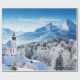 Uma bela cena de inverno com montanhas e igreja, editar texto
