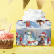 Uma ilustração animadora de feriado mostrando um cachorro alegre brincando na neve, vestindo um chapéu de Papai Noel e cercado por caixas coloridas de presentes. Ao fundo, as crianças constroem um boneco de neve ao lado de uma árvore de Natal coberta de neve, criando uma alegre terra maravilhosa do inverno. Perfeito por espalhar alegria e capturar a magia do Natal.
