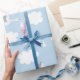 Celebre a chegada do seu homenzinho ao seu chá de fraldas com este papel de embrulho que apresenta um lindo fundo azul-céu, com um carregando de cegos e um coração.