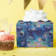 Uma imagem fractal multicolorida (rosa, verde, azul, amarelo) e em loop em um fundo azul escuro. Uma interpretação de como o céu noturno pode aparecer a um xamã siberiano enquanto em transe se comunicando com os espíritos.