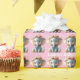 Pequena elefante adorável com orelhas rosa grandes e flores em cima de sua cabeça, papel de embrulho de chá de fraldas. Personalize com seu texto para usar este para aniversários.