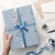 Coelho doce de coelhinho d'água em um cesto mais vago e flores azuis de um menino bebê com uma dica de amarelo em um fundo azul doce. Tão fofo para aquele chá do bebê. Tão único para embrulhar todos os presentes neste presente personalizado. 100% de satisfação do cliente com o "Zazzle"