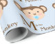 Bravo e macaco azul-bebê "M é para macaco"... plástico de presente de chá de fraldas macaco. Este doce invólucro de presente de chá de fraldas macaco-macaco castanho e azul pode ser personalizado com o seu texto no estilo de letra e na cor da sua escolha.