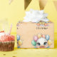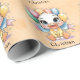 Um adorável patinho animado vestido com uma roupa amarela senta-se alegremente em meio a um conjunto vibrante de balões coloridos. O pato segura um balão amarelo numa mão e tem olhos azuis largos e alegres, radiando alegria. O fundo apresenta um gradiente azul claro com balões flutuantes adicionais, adicionando à atmosfera festiva. Uma faixa encantadora na parte inferior da imagem mostra as palavras "CHÁ DE FRALDAS", fazer perfeito para ocasiões celebratórias.