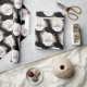 O design apresenta um quadro floral branco moderno com uma simples tipografia sobre fundo preto. Ele pode ser personalizado alterando o nome e a data do evento da noiva. Para mais personalização, sinta-se à vontade para me enviar mensagens através da minha loja Zazzle.