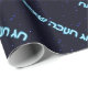 Texto brilhante, azul e branco, em hebraico, lendo "Chag Chanukkah Sameach" (Feliz Chanukkah) em um fundo estrelado. Chanukkah é o médio-inverno "Festival das Luzes.