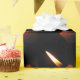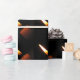 Ilumine acima sua vida com este papel de envolvimento elegante. Caracteriza um teste padrão abstrato de repetição de uma vela marrom com uma chama bonita nas máscaras de branco, de amarelo, o ouro e a laranja ajustados em um fundo preto puro.