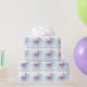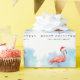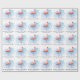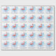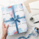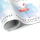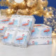 Uma explosão de aquarela moderna em azul e roxo com flamingo rosa usando chapéu de Papai Noel em papel de embrulho. Torne-o pessoal adicionando o nome da sua família.