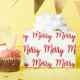 O chapéu de Papai Noel em texto vermelho de "feliz" com fundo branco. A cor de fundo pode ser alterada.
