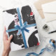Gato com chapéu do papai noel, fundo feito sob encomenda, papel de envolvimento do feriado.